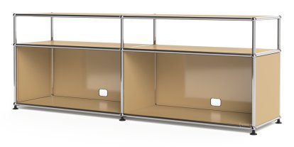 Meuble bas Lowboard L USM Haller avec rehausse, personnalisable, Beige USM, Ouvert, Avec passe-câbles au centre bas