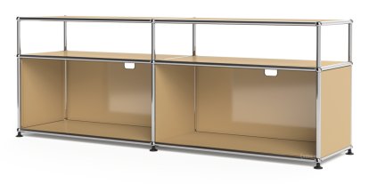 Meuble bas Lowboard L USM Haller avec rehausse, personnalisable, Beige USM, Ouvert, Avec passe-câbles au centre haut