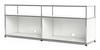 Meuble bas Lowboard L USM Haller avec rehausse, personnalisable, Blanc pur RAL 9010, Ouvert, Avec passe-câbles au centre bas