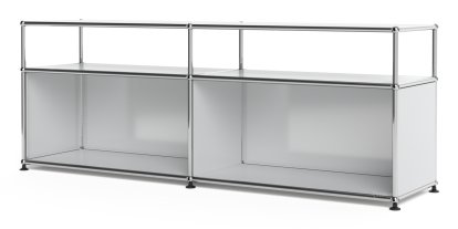 Meuble bas Lowboard L USM Haller avec rehausse, personnalisable Gris clair RAL 7035|Ouvert|Sans passe-câbles
