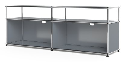 Meuble bas Lowboard L USM Haller avec rehausse, personnalisable, Gris moyen RAL 7005, Ouvert, Avec passe-câbles au centre haut