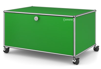 Meuble bas Lowboard TV sur roulettes USM Haller, Avec porte abattante et paroi arrière, Vert USM