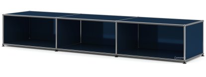 Meuble bas Lowboard XL USM Haller, personnalisable, Bleu acier RAL 5011, Ouvert, 50 cm