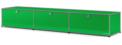 Meuble bas Lowboard XL USM Haller, personnalisable, Vert USM, Avec 3 portes abattantes, 50 cm