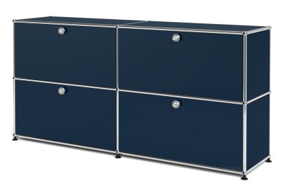Meuble de rangement Sideboard L USM Haller, personnalisable, Bleu acier RAL 5011, Avec 2 portes abattantes, Avec 2 portes abattantes