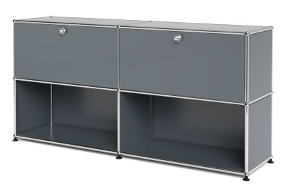 Meuble de rangement Sideboard L USM Haller, personnalisable, Gris moyen RAL 7005, Avec 2 portes abattantes, Ouvert