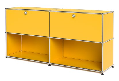 Meuble de rangement Sideboard L USM Haller, personnalisable, Jaune or RAL 1004, Avec 2 portes abattantes, Ouvert