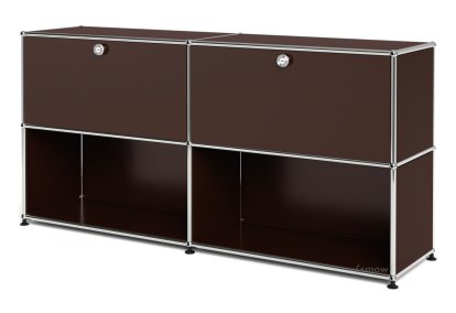 Meuble de rangement Sideboard L USM Haller, personnalisable, Marron USM, Avec 2 portes abattantes, Ouvert