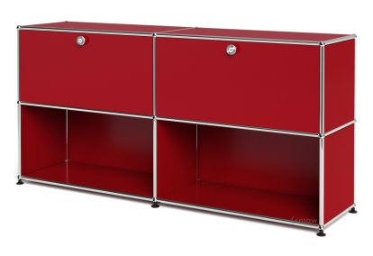 Meuble de rangement Sideboard L USM Haller, personnalisable, Rouge rubis USM, Avec 2 portes abattantes, Ouvert