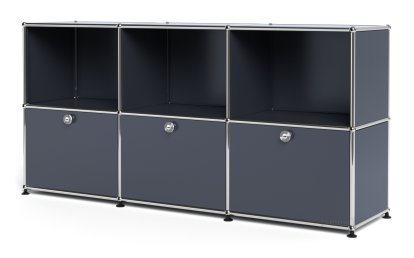 Meuble mixte Sideboard 50 USM Haller, personnalisable, Anthracite RAL 7016, Ouvert, Avec 3 portes abattantes
