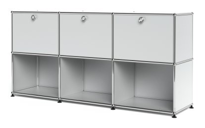 Meuble mixte Sideboard 50 USM Haller, personnalisable, Argent mat USM, Avec 3 portes abattantes, Ouvert