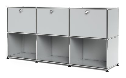 Meuble mixte Sideboard 50 USM Haller, personnalisable, Gris clair RAL 7035, Avec 3 portes abattantes, Ouvert