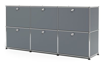 Meuble mixte Sideboard 50 USM Haller, personnalisable, Gris moyen RAL 7005, Avec 3 portes abattantes, Avec 3 portes abattantes