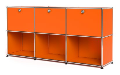 Meuble mixte Sideboard 50 USM Haller, personnalisable, Orange pur RAL 2004, Avec 3 portes abattantes, Ouvert
