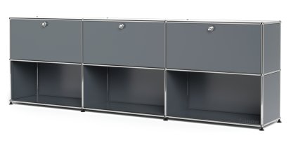 Meuble mixte Sideboard XL USM Haller, personnalisable, Gris moyen RAL 7005, Avec 3 portes abattantes, Ouvert