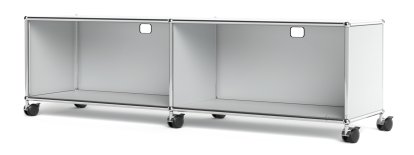 Meuble bas Lowboard TV/Hi-Fi USM Haller, personnalisable, Argent mat USM, Ouvert, Avec passe-câbles au centre haut