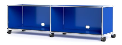 Meuble bas Lowboard TV/Hi-Fi USM Haller, personnalisable, Bleu gentiane RAL 5010, Avec 2 portes abattantes, Avec passe-câbles au centre bas