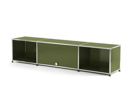 Meuble TV bas Lowboard USM Haller avec porte escamotable, Vert olive RAL 6003