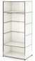 La particularité des étagères USM Haller aujourd'hui comme par le passé est le concept modulaire : les meubles peuvent être construits sous presque toutes les formes imaginables à partir de trois éléments de base. Des étagères en métal ou en verre sont insérées dans la structure de base en tubes métalliques chromés, ces derniers reliés par des boules métalliques chromées. Grâce à sa modularité et son intemporalité, les meubles USM s'intègrent dans n'importe quelle pièce. Il s'adapte de manière flexible aux besoins de votre maison et vous aide à l'aménager selon vos préférences grâce à un espace de rangement élégant.