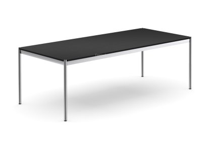 Comme tous les autres meubles du système d’ameublement USM Haller, les tables USM sont réduites à l’essentiel en termes de fonctionnalité et d’esthétique. Les sobres pieds de table chromés s’accordent d’ailleurs parfaitement avec le design des autres meubles USM, caractérisé par des lignes claires et droites.