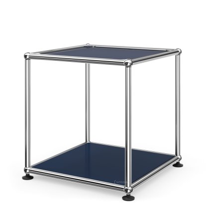 Table d'appoint 35 USM Haller, Panneau supérieur en verre laqué, panneau inférieur en métal, Bleu acier RAL 5011