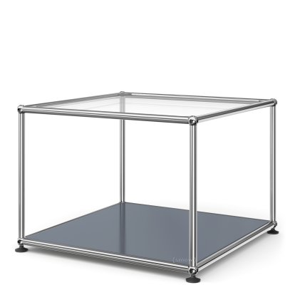 Table d'appoint 50 USM Haller, Panneau supérieur en verre, panneau inférieur en métal, Gris moyen RAL 7005