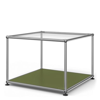 Table d'appoint 50 USM Haller Panneau supérieur en verre, panneau inférieur en métal|Vert olive RAL 6003
