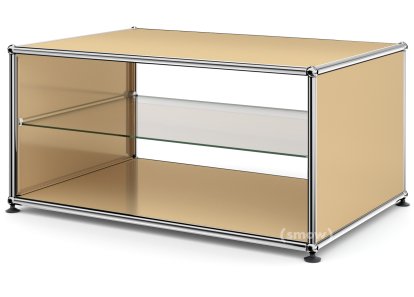 Table d'appoint avec panneaux latéraux USM Haller, 75 cm, Avec tablette intérieure en verre, Beige USM