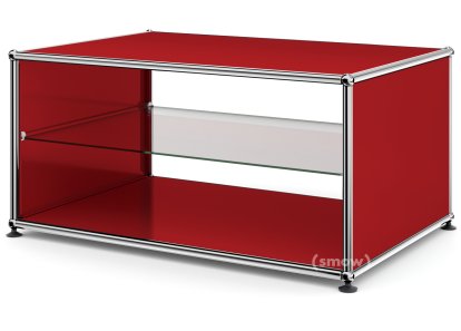 Table d'appoint avec panneaux latéraux USM Haller, 75 cm, Avec tablette intérieure en verre, Rouge rubis USM
