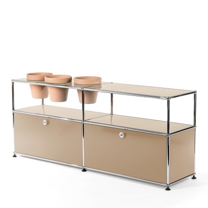 Meuble Sideboard USM Haller pour plantes, Beige USM, Avec 2 portes abattantes, Avec 3 pots sur la gauche, Terre cuite