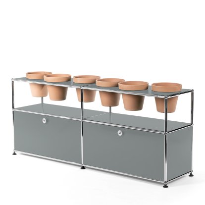 Meuble Sideboard USM Haller pour plantes Gris moyen RAL 7005|Avec 2 portes abattantes|Avec 6 pots|Terre cuite