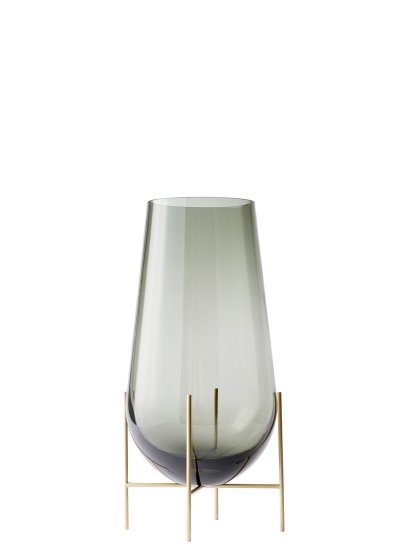 Vase Échasse , Grand (H 60 cm, Ø 30/20 cm), Fumée / Laiton brossé