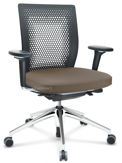 ID Air Noir basic|Tissu Plano 80 coffee|Noir basic|Piétement à 5 branches, aluminium poli|Avec accotoirs 3D|Souples pour sols durs