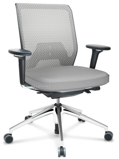 ID Mesh Mécanisme Flowmotion avec inclinaison avant et réglage de la profondeur |Avec accotoirs 3D|Piétement à 5 branches, aluminium poli|Noir basic|Assise Skin, dossier Netline|Soft grey|Souples pour sols durs