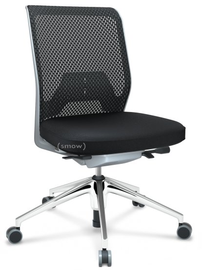 ID Mesh, Mécanisme Flowmotion sans inclinaison avant et sans réglage de la profon, Sans accotoirs, Piétement à 5 branches, aluminium poli, Soft grey, Assise Silk Mesh, dossier Diamond Mesh, Nero, Durs pour tapis