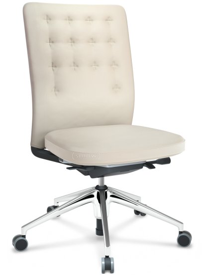 ID Trim, Avec support lombaire, Mécanisme Flowmotion sans inclinaison avant et sans réglage de la profon, Sans accotoirs, Piétement à 5 branches, aluminium poli, Assise et dossier cuir, Neige, Durs pour tapis